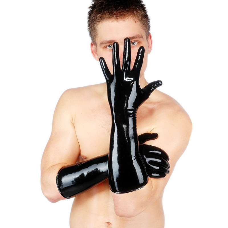 Handschuhe lang - bis kurz vor dem Ellbogen, aus hochwertigem Naturlatex. Materialstärke 0,4 mm. Pflegehinweis: Mit Latexpflegemittel aufpolieren bzw. reinigen! Farbe: Schwarz. Material: 100% Latex.